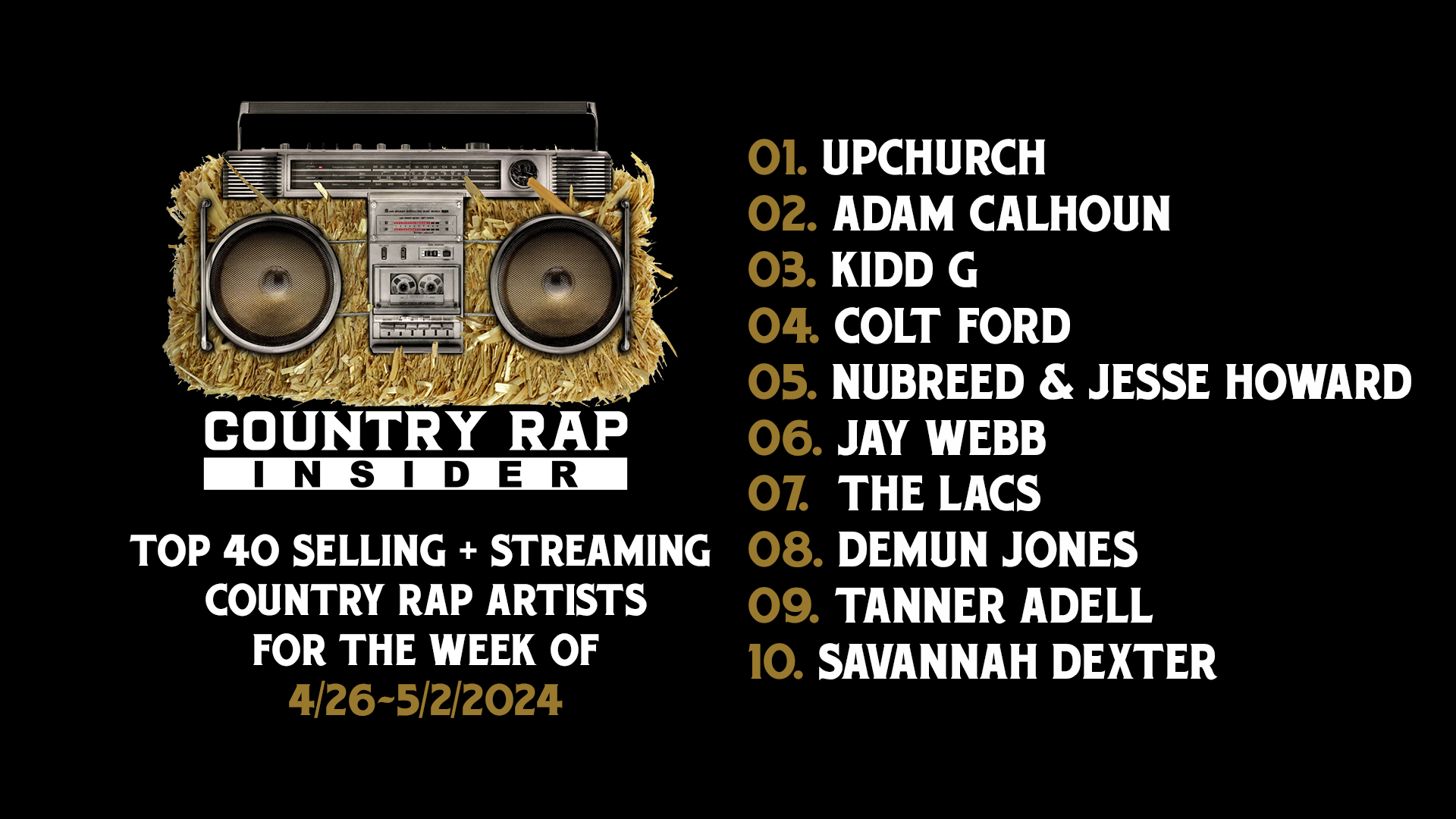 Bubba Sparxxx drops TWO spots from #14 to #16.