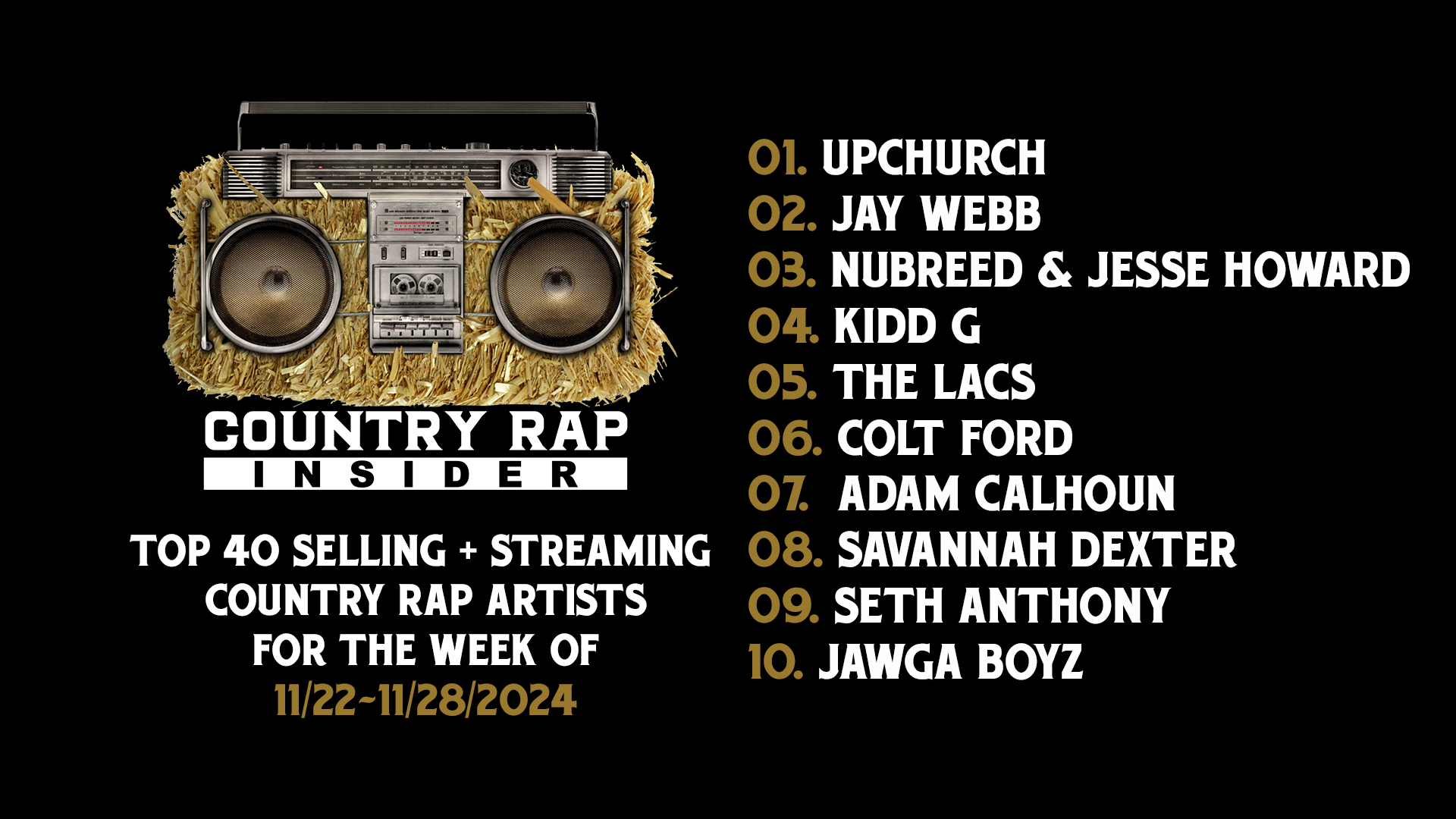 …Rare Of Breed down ONE spot from #10 to #11 and Moonshine Bandits down ONE peg from #11 to #12. Next, Nappy Roots move up ONE slot from #15 to #14 pushing Bubba Sparxxx down ONE position from #14 to #15. Then, Tanner Adell breaks last week’s TIE with Nu Breed by taking sole possession of the #16 spot as Nu Breed drops TWO slots from #16 to #18. Meanwhile, FJ Outlaw moves up ONE position from #18 to #17.